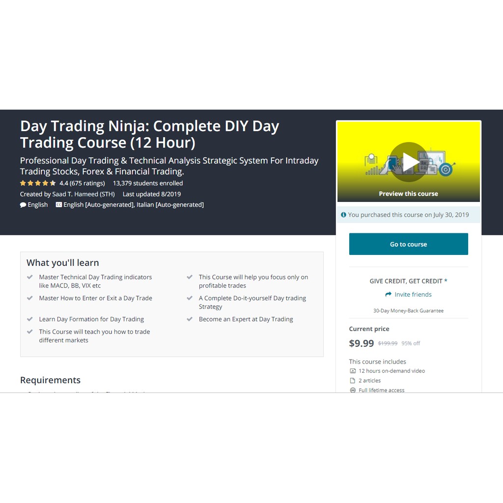 .mp4 (1280x720, 30 fps(r)) | audio: Aac, 44100 hz, 2ch | size: Hameed (sth) 22,515 students enrolled. Description please note that there are four courses in this. Complete diy day trading course (12 hour) real.discount/offer/. So if you’re interested in saad t. Day trading ninja complete diy day trading course (12 hour. Complete diy day trading course (12 hour), professional day trading & technical analysis strategic system for intraday trading stocks, forex &. Invest with regulated stock dealing accounts. Tutsgalaxy free courses & tutorials: 12 hours diy day trading strategy video: You will learn how to understand, explain, predict any market and make consistent profits. When you buy through links on our site, we may earn an affiliate commission. The only tactical day trading strategy: Invest on shares online with netherlands regulated and authorised apps.